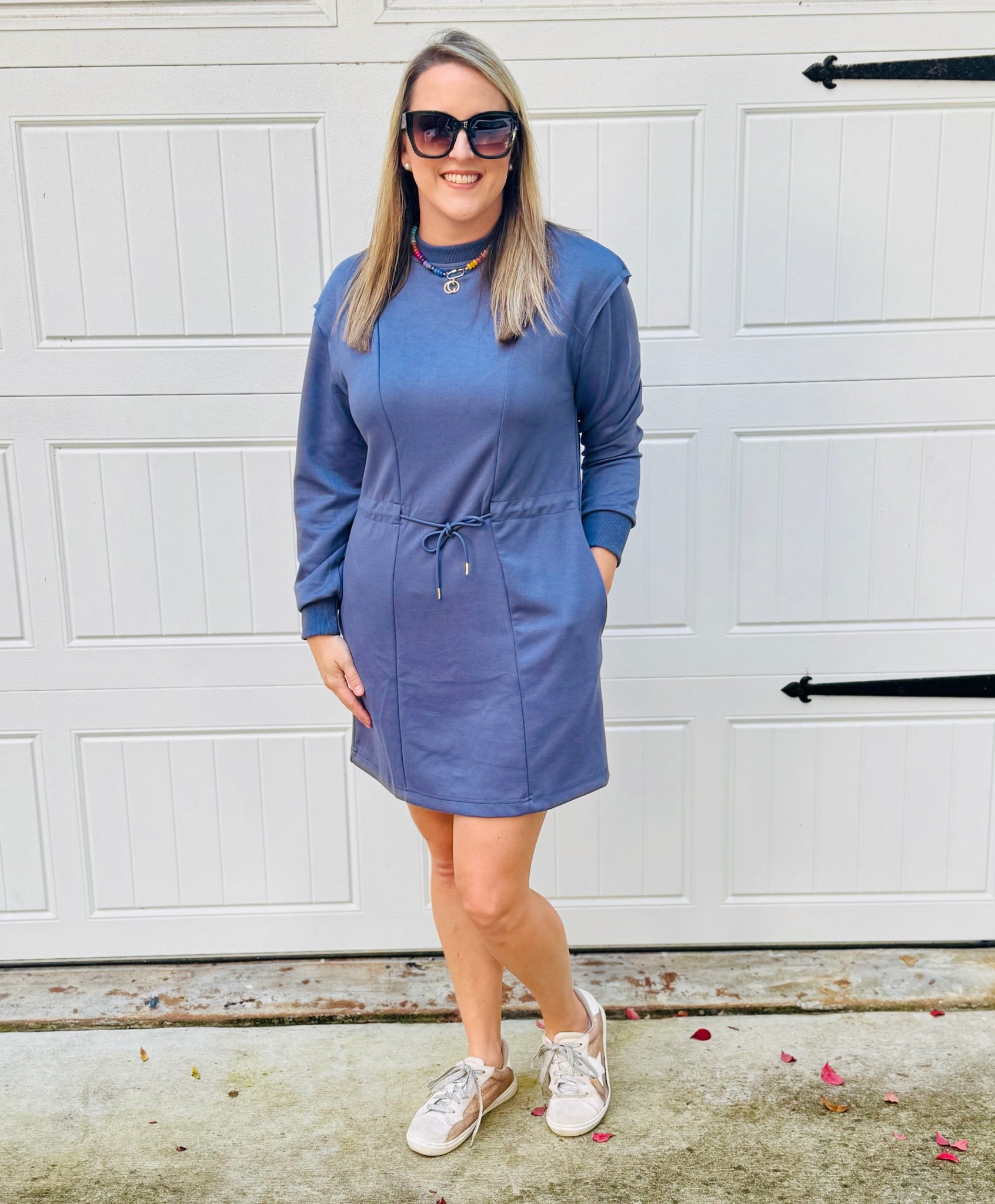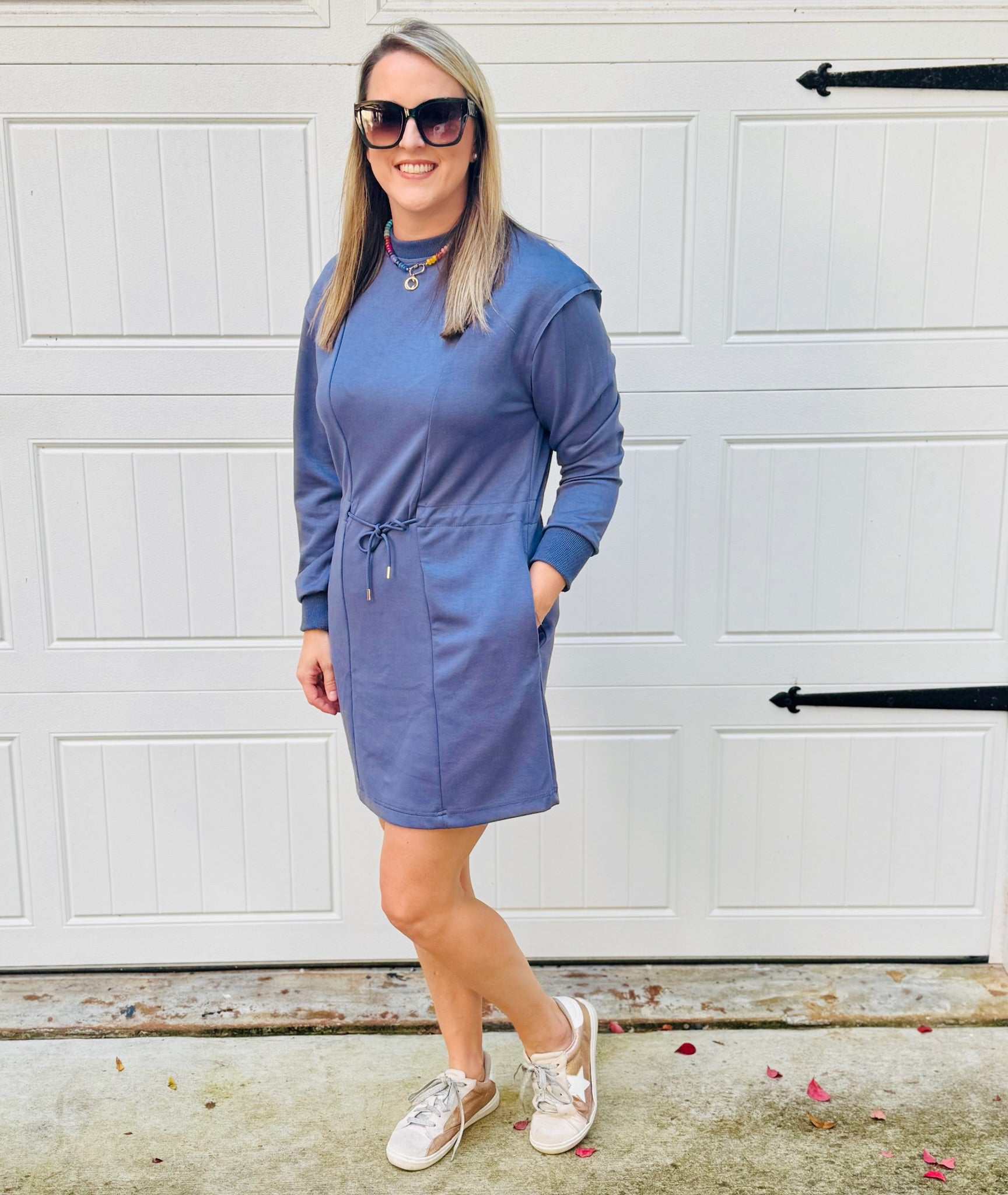 Wrap yourself in cozy sophistication with the Addison, our luxeknit buttery soft knit dress! Featuring a classic crew neckline and long sleeves with ribbed cuffs, it's designed for cooler days and easy layering. The adjustable drawstring waist cinches to your perfect fit, whileside pockets add functionality without compromising the silhouette. Whether you're lounging at home or heading out for coffee, this dress is your new go-to for everyday luxury.