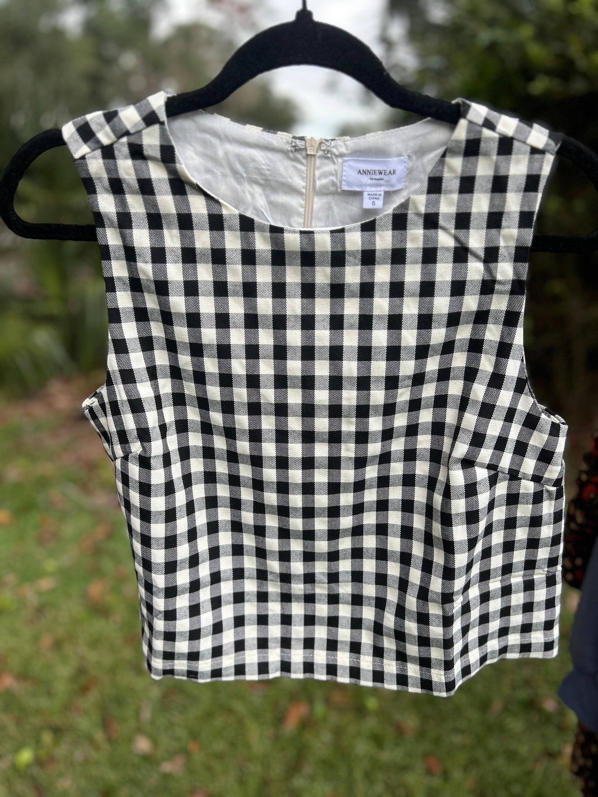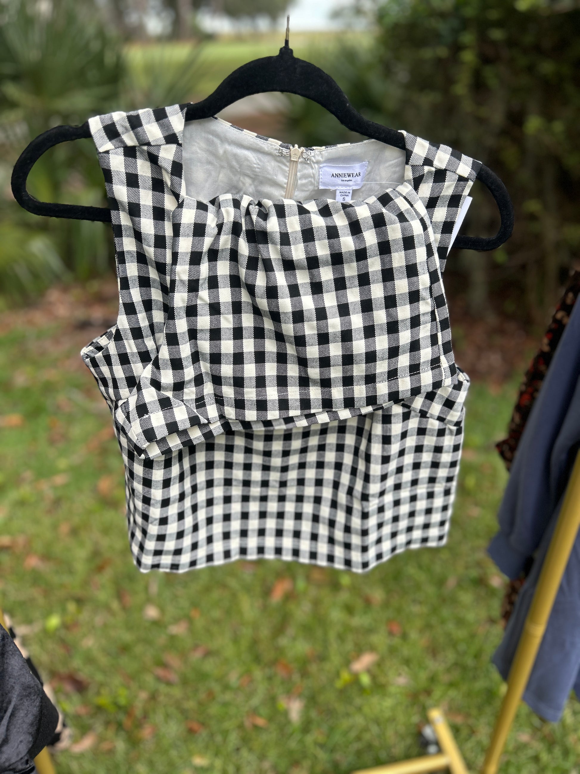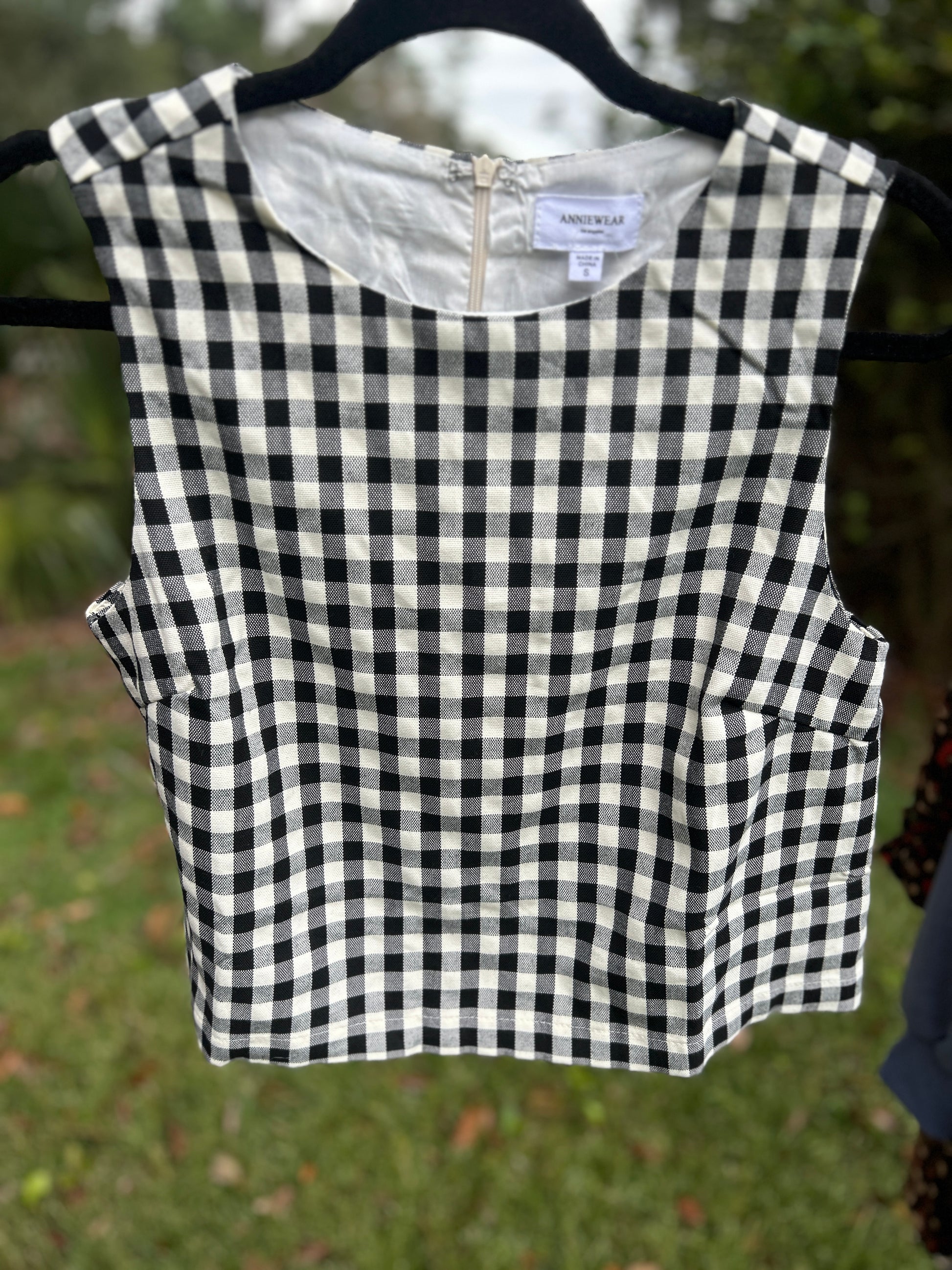 The Edie is a timeless duo with a playful twist! This two-piece set features a sleeveless top and matching shorts, both crafted from lightweight gingham check woven fabric in classic black and white. The top is designed with a round neckline for a clean, effortless silhouette, while the coordinated shorts complete the look with laid-back charm. Perfect for sunny days or layering in cooler temps, the Edie can be worn in a variety of ways.