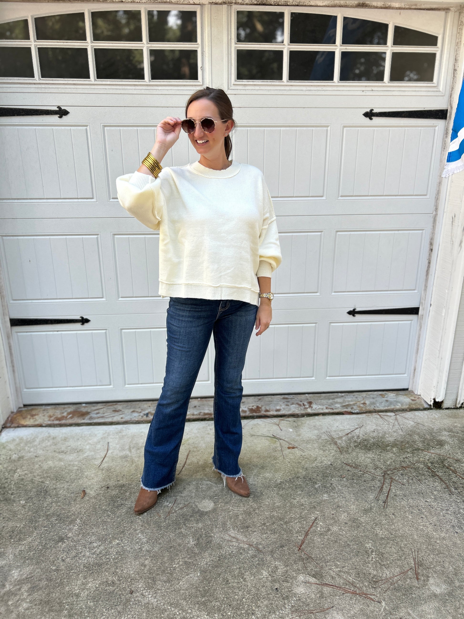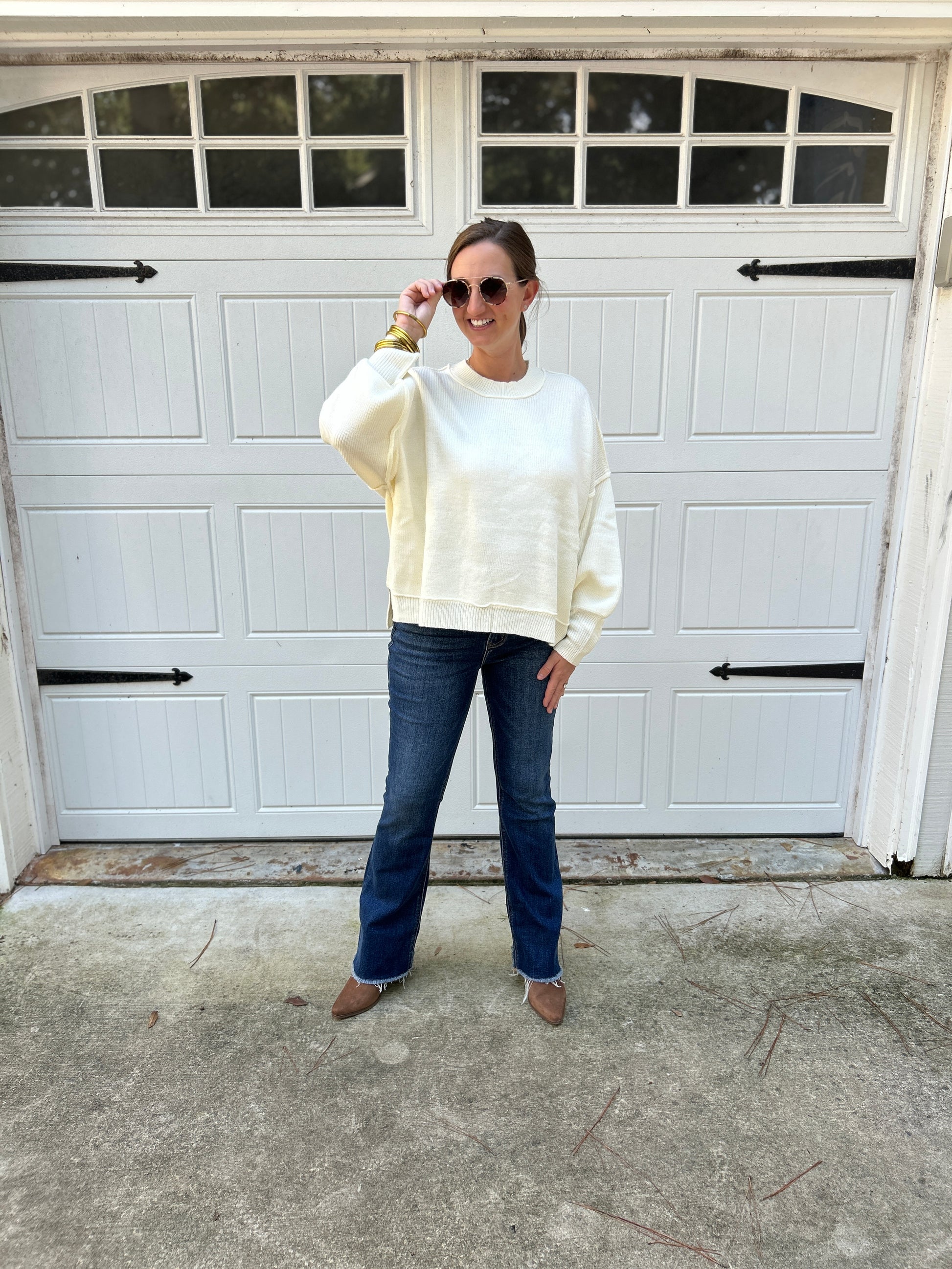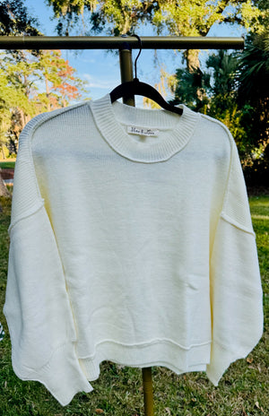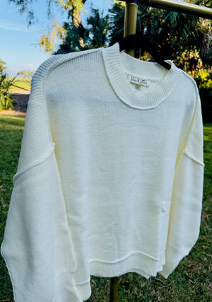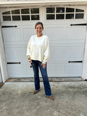 Refresh your everyday wardrobe with our effortlessly chic crew neck sweater, the Kamsi. Crafted from a soft, cozy knit, this sweater features a classic crew neckline and voluminous balloon sleeves that taper at the cuffs, adding a touch of drama to an otherwise minimalist silhouette. The relaxed fit drapes beautifully, making it perfect for any pair of pants or skirt. This versatile piece brings understated elegance to any look.
