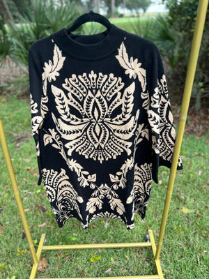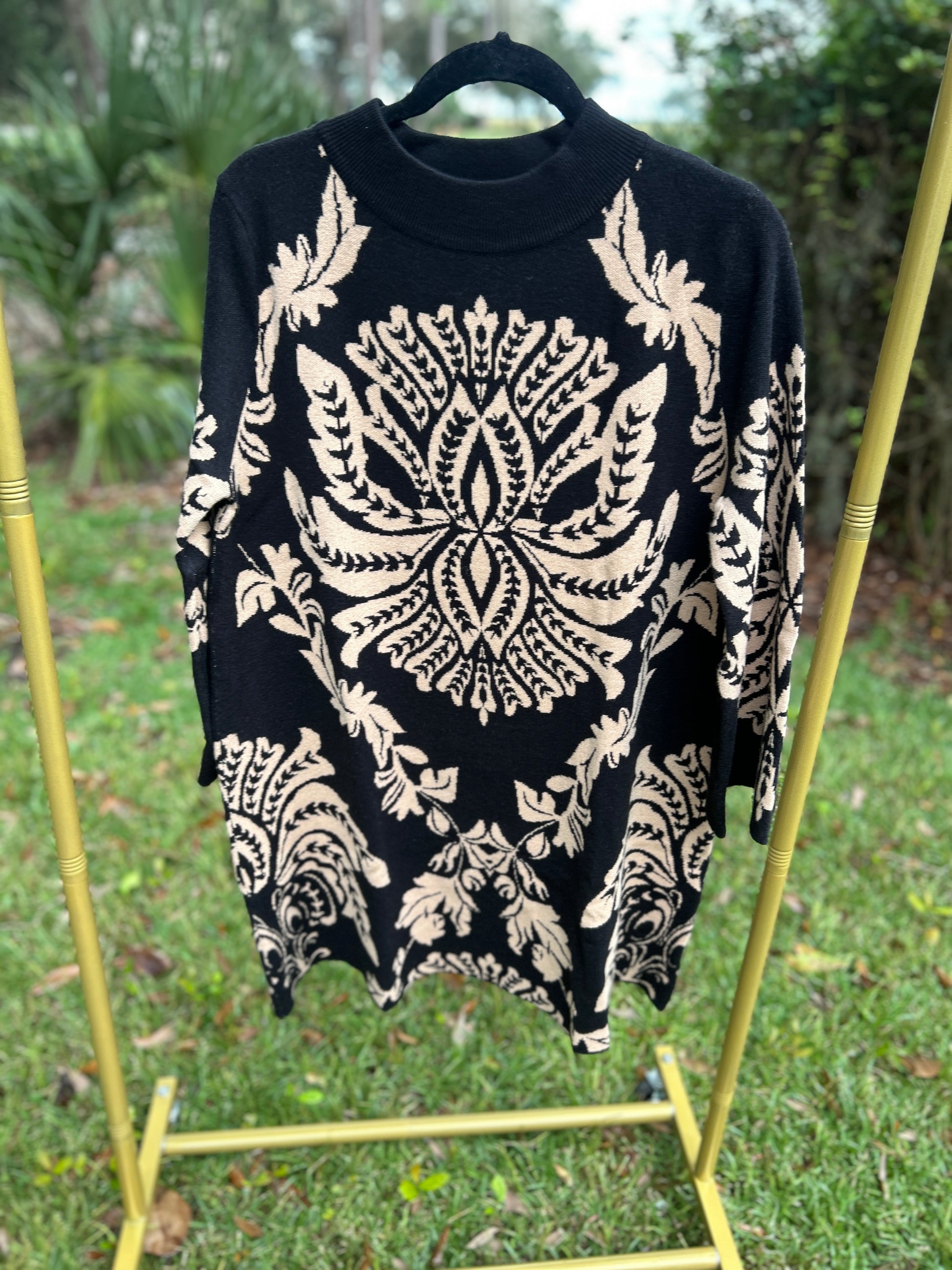 Elevate your cold-weather wardrobe with this bold and cozy two-tone abstract print sweater dress. Designed with a modern mock neck and a flattering A-line silhouette, this knit sweater dress blends comfort and contemporary style. The eye-catching abstract print adds artistic edge, while the soft knit fabric offers warmth without bulk. Perfect for layering or wearing solo, this dress transitions effortlessly from casual daywear to a chic evening look.
